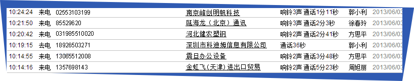 支持录音,CTI日志(响铃次数,通话时间,号码,接听人)