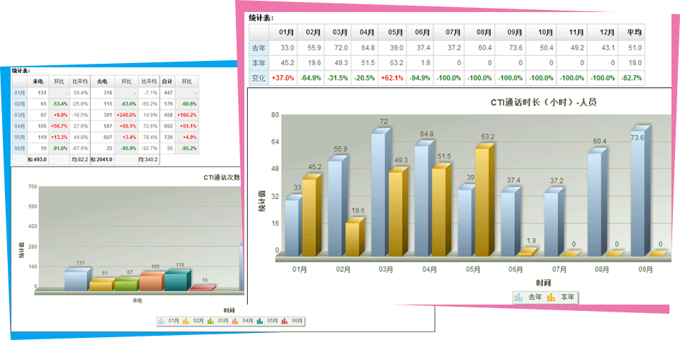 CTI呼入呼出的电话量同比环比分析,从通话量反映业务趋势