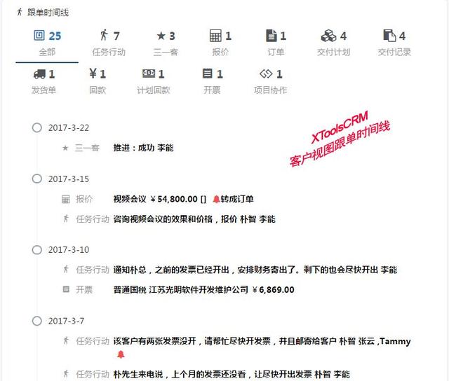 要解决这个问题实际涉及到客户管理,需要对客户接触点进行维护,而不仅仅只做日常的借势营销。但是很多企业疏于制定一套标准的客户跟踪模板,也就是说销售员对自己的客户接接触点根本没有概念,更别说找到这些接触点。为帮助销售员找到这些客户接接触点,XTools在客户视图中提供了一种创新突破的工具:跟单时间线。从获得客户线索开始,每一个行动、电话、短信、邮件,需求、方案、报价,客户咨询和反馈,商务环节的推进,对客户的价值判断和推进变化,都以发生时间为主序,完整呈现在客户视图。“双十一”将至,有了XTools CRM做前期的客户关系管理,采取针对性的短信营销策略,相信你的客户不会再拒绝你。