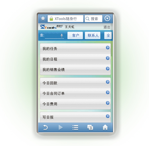周边客户:按地理位置精确的展现周边客户,帮行销人员实现一次外勤,关怀多家的效果。