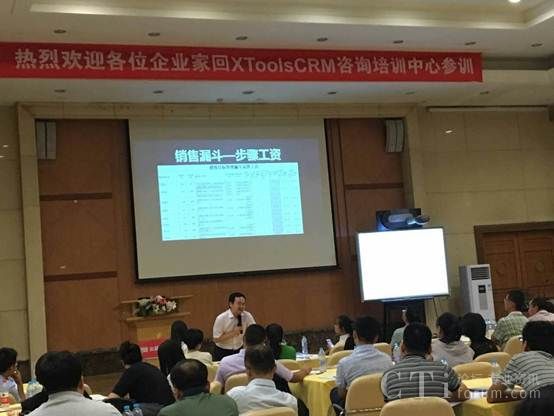 会议核心以销售工业化为主线,由我们的培训王老师分别从销售流程优化,管理流程和报表等方面做了详细讲解,并结合具体客户案例做了一对一的功能讲解。其中,鑫悦琦科贸(http://www.kingrich.com.cn/web/Index。html)的胡总更是倾心为大家做了关于自己团队实施XToolsCRM软件的导入过程和应用案例。胡总开头的一句话让小编感触很深,他说“用CRM系统就是为了赚钱的”没错,这个正是CRM的灵魂所在!一切不以盈利为目的的销售活动都是耍流氓,企业运营过程中无非是钱进钱出的过程,差值大于0,这个事情值得去做,小于0根本应该果断放弃,毕竟做企业不是慈善家,不仅要考虑到要向董事会汇报,其实也要对员工负责,企业不盈利,员工没有更高的福利,所以借助CRM才是真正的帮业务来赚钱,帮企业来赚钱!胡总在现场分享的干货太多,我们会找一个时间给大家详细整理做分享~