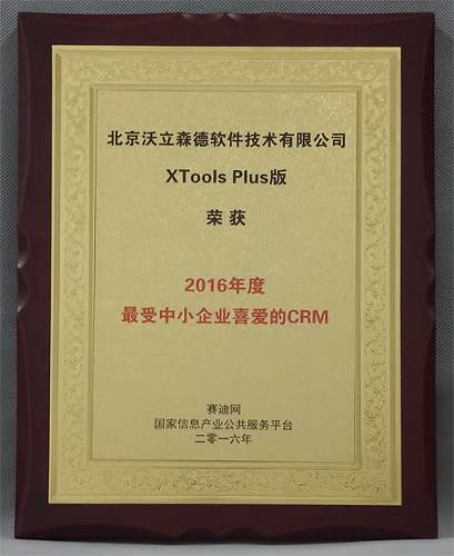2016年12月16日,以“科技原力觉醒,引领创新巅峰”为主题的“创新影响力年会暨国家产业服务平台2016年终颁奖盛典”在北京举行。北京沃立森德软件技术有限公司(以下简称“XTools”)产品“XToolsCRM Plus版”在本次大会上荣获“2016年度最受中小企业喜爱的CRM”称号。