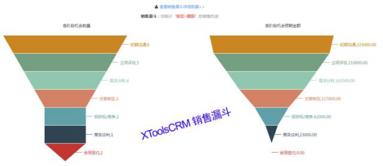 企业管理者如何对灰犀牛的量级进行精确预判?多数企业会从整体行业来分析评估灰犀牛的量级,而从企业内部的运营预判风险才真正具有针对性和精准性。企业管理者可以借助CRM软件来掌握公司内部的整体运营情况,借此找到灰犀牛并进行量级的精准预判。比如XTools CRM软件中,企业管理者就可以通过对形成的销售漏斗进行分析,把握团队整体跟进,准确评估销售人员和销售团队的销售能力,发现销售过程中的障碍和瓶颈。管理者可以通过自定义的销售管线要素来分析公司整体的销售机会,以阶段划分、阶段升迁标志,阶段升迁率、平均阶段耗时、阶段任务等销售管线要素为例,正常情况下这些要素在销售漏斗中呈现倒金字塔,但如果某个阶段出现了问题,会影响到阶段转化率,会直接反应在漏斗的形状改变上,结合阶段停留时间,管理者就能更准确预判项目的推进所遇到的问题了。XTools销售漏斗同时能够满足企业“分而治之”的管理。