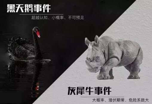 “灰犀牛”概念最早由美国学者米歇尔·沃克提出,用来指代大概率、事发前有迹可循却未引起足够重视、最终引发严重后果的重大危机事件。“灰犀牛”是对概率大、冲击力强的风险的贴切比喻。灰犀牛体型庞大,应该很容易看到它,本不该被忽视。而正是因为其看上去体型大、速度慢,往往让我们低估了它的风险,疏于防范,最终造成严重后果。2008年美国房地产泡沫集中爆发以及在此之前的诸多泡沫破裂;飓风卡特里娜和桑迪以及其他自然灾害后的毁灭性余波;颠覆了传统媒体的现实数码技术等等都是“灰犀牛”事件的典型案例。当前,相比中国房地产行业的风声,更多企业涌入投资浪潮,在共享单车上的“灰犀牛”显然已经初现端倪:随着公共资源被超负荷占用、影响市民的日常生活和出行时、严重影响市容及交通秩序等问题的出现,各地监管部门以行政手段直接暂停共享单车企业投放,上海、福州、杭州、郑州等多个城市的共享单车被叫停,这对企业而言损失巨大。