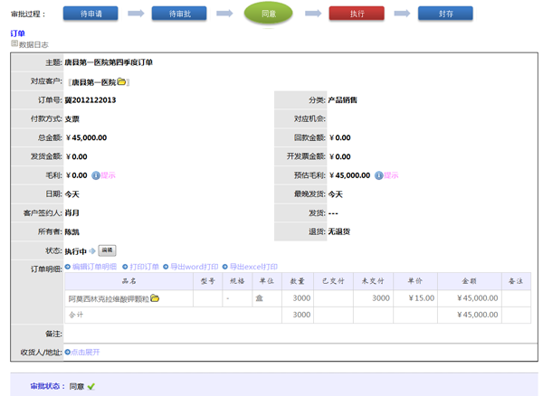 XToolsCRM把正奥医药的商务逻辑更好的管理起来,从产品的管理,入库出库,到合同订单的审批,回款的记录等,使企业内部的商务逻辑更加规范化,系统化。实现了无纸化办公+移动化办公。